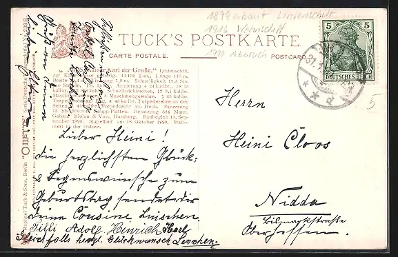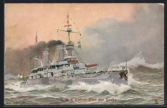 Künstler-AK Hans Hörnigk: Kriegsschiff SMS Kaiser Karl der Grosse