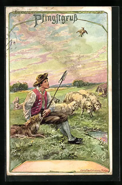 Künstler-AK Hans Kaufmann: Ruhe - Rastender Schäfer