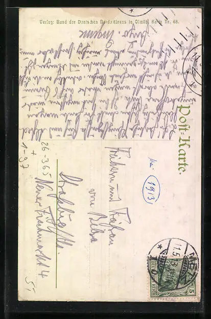 alte Ansichtskarte, gelaufen 1913, Abriebspuren Kante unten, Stempelspur, guter Zustand