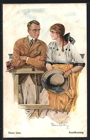 Künstler-AK Hans Leu: Annäherung zweier Liebender