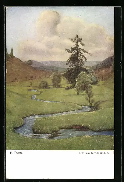 Künstler-AK Hans Thoma: Bachlauf auf einer Wiese