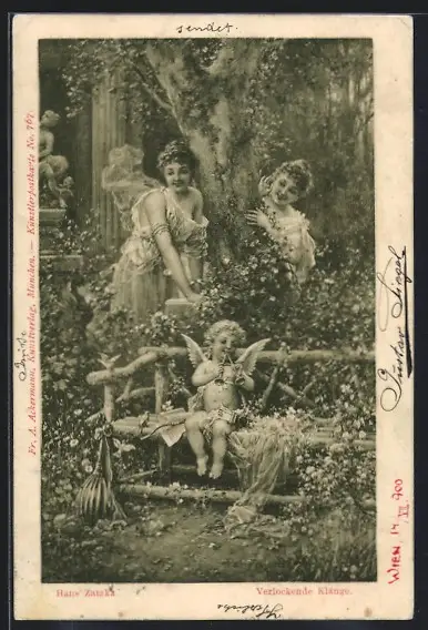 Künstler-AK Hans Zatzka: Amor spielt auf einer Flöte