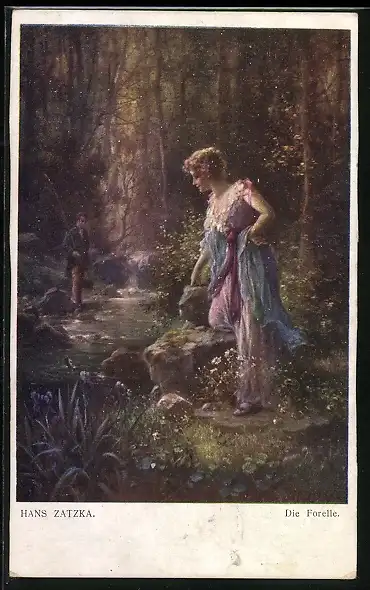 Künstler-AK Hans Zatzka: Die Forelle