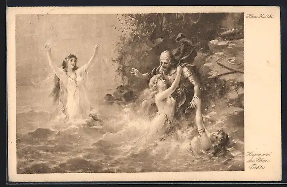 Künstler-AK Hans Zatzka: Hagen und die Rhein-Töchter