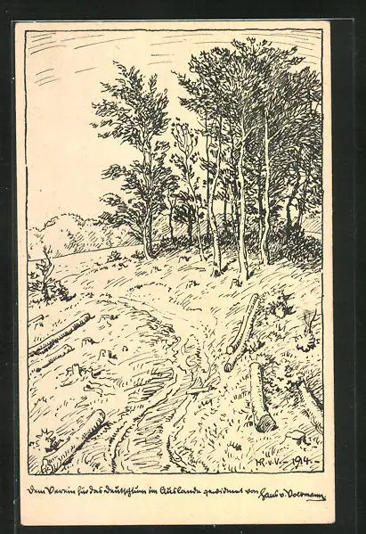 Künstler-AK Hans von Volkmann: Ortspartie mit Bäumen