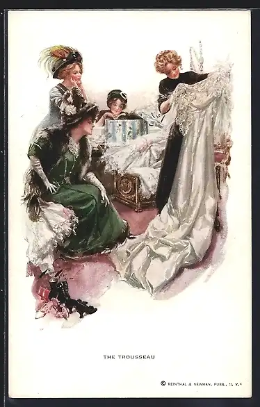 Künstler-AK Harrison Fisher: The Trousseau, Das Hochzeitskleid
