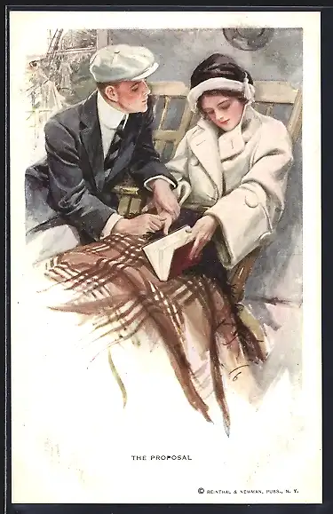 Künstler-AK Harrison Fisher: the proposal, Mann bei einer Frau mit Buch