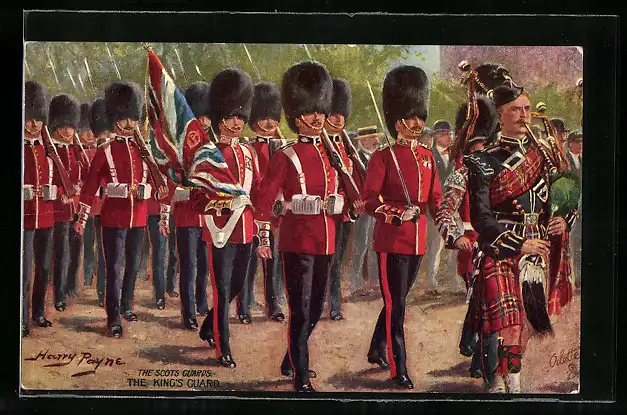 Künstler-AK Harry Payne: The Scots Guards, The King`s Guard