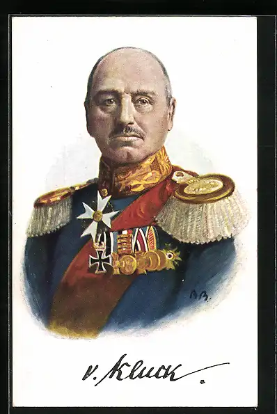 Künstler-AK Heerführer v. Kluck in Uniform mit Abzeichen und Orden