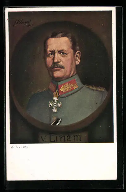 Künstler-AK Heerführer von Einem in Uniform mit Orden