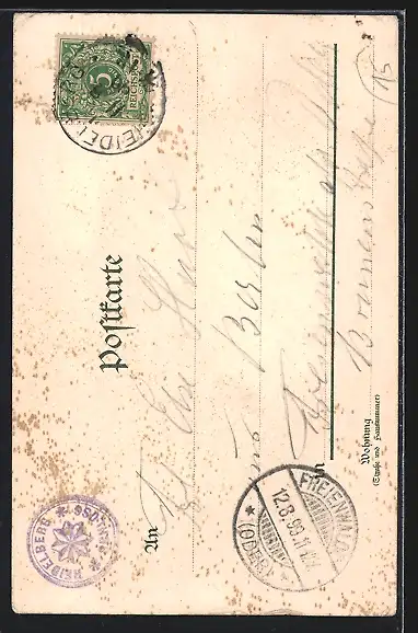 alte Ansichtskarte, gelaufen 1899, Eckknicke oben, guter Zustand