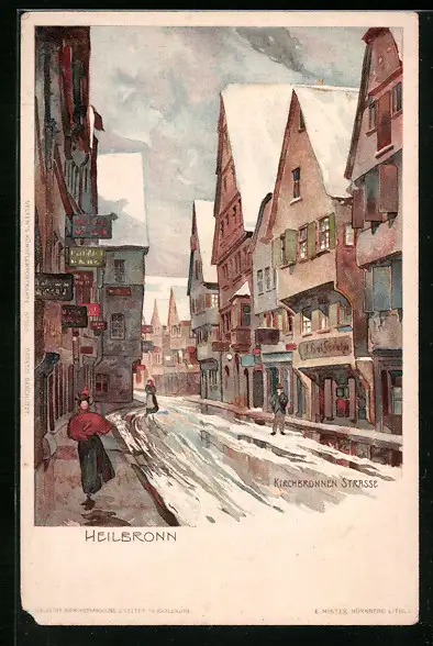 Künstler-AK Heilbronn, Kirchbrunnen Strasse