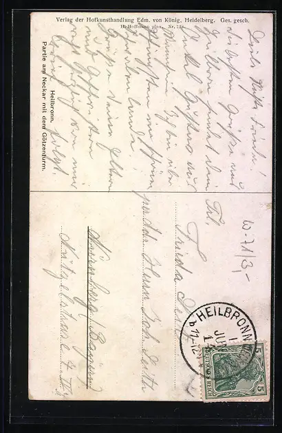 Künstler-AK Heilbronn, Partie am Neckar mit dem Götzenturm