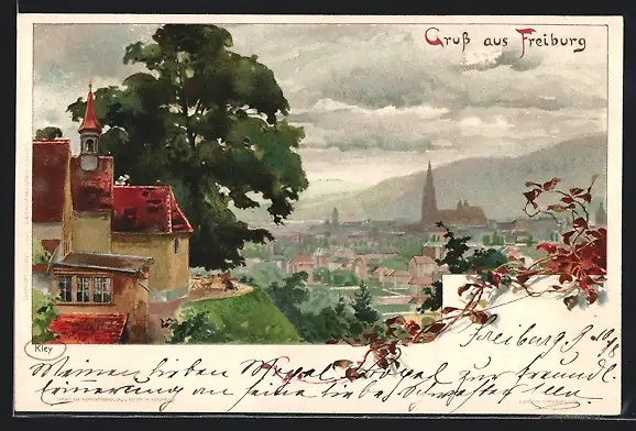 Künstler-AK Heinrich Kley: Freiburg, Totalansicht