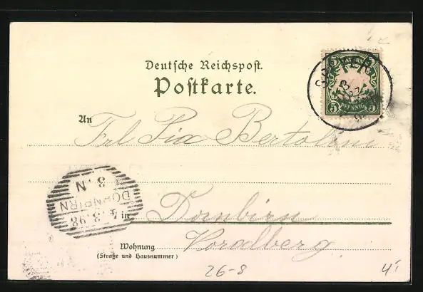 alte Ansichtskarte, gelaufen 1898, guter Zustand