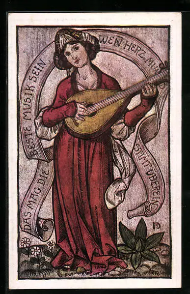 Künstler-AK Heinz Schiestl: Junge Frau mit Laute
