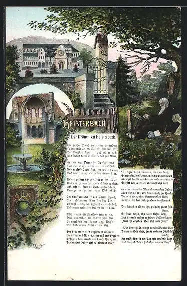 Künstler-AK Heisterbach, Kloster mit Text Der Mönch zu Heisterbach