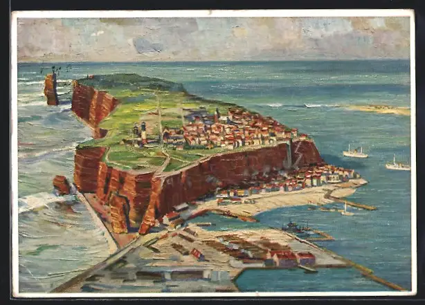 Künstler-AK Helgoland, Gesamtansicht der Insel