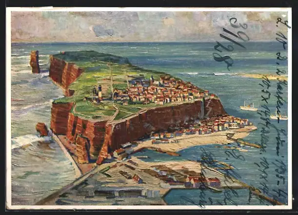 Künstler-AK Helgoland, Totalansicht, Gedicht