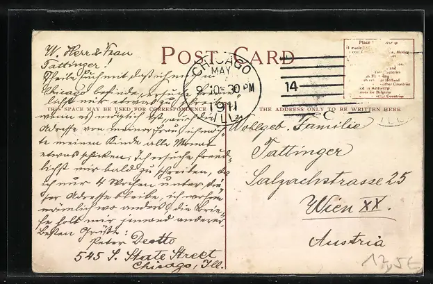 alte Ansichtskarte, gelaufen, Briefmarke entfernt, rückseitig Oberflächenschaden, guter Zustand