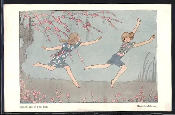 Künstler-AK Henriette Willebeek le Mair: Catch me if you can, Hasche-Mann