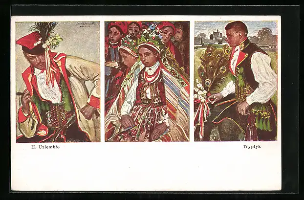 Künstler-AK Henryk Uziemblo: Wesele, polnische Trachten