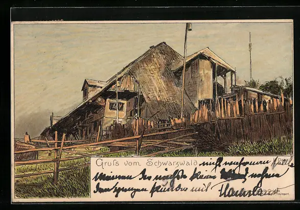 Künstler-AK Hermann Daur: Haus im Schwarzwald