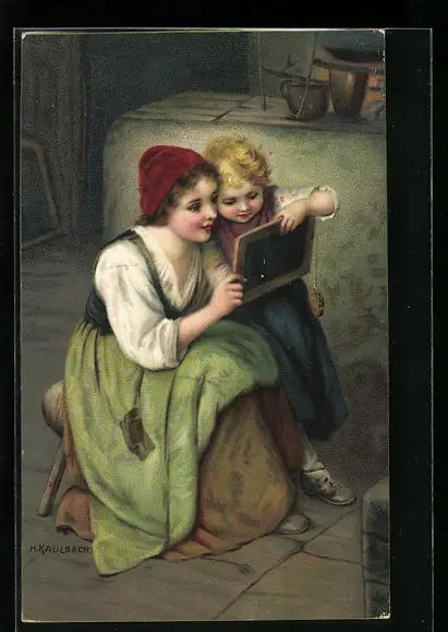 Künstler-AK Hermann Kaulbach: Aller Anfang ist schwer.