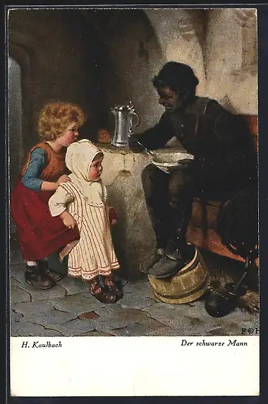 Künstler-AK Hermann Kaulbach: Der schwarze Mann, Schornsteinfeger