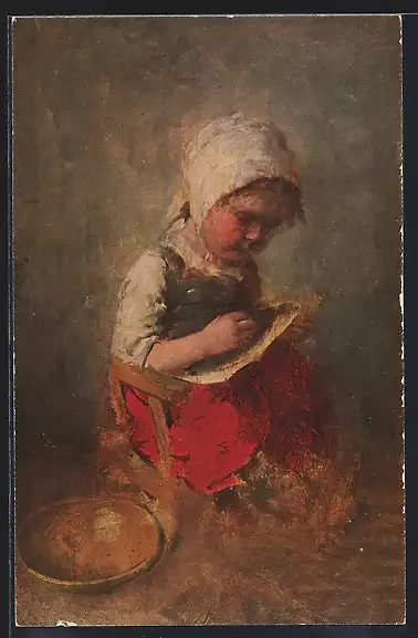 Künstler-AK Hermann Kaulbach: Mädchen bei der Handarbeit