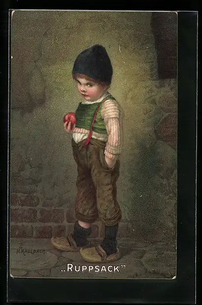 Künstler-AK Hermann Kaulbach: Ruppsack, Kleiner Junge mit einem Apfel