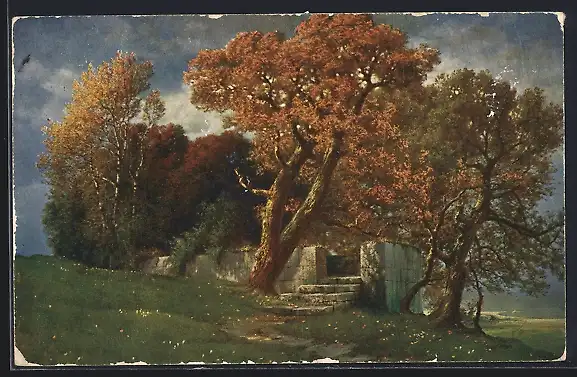 Künstler-AK Hermann Rüdisühli: Weg zum Tempel, Bäume in Herbstfarben