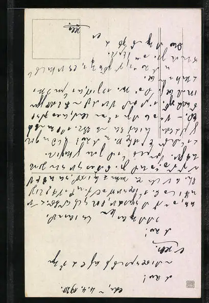 Personenbezogene Daten auf der Rückseite der Karte wurden durch blauen Textmarker unkenntlich gemacht. Die blauen Stellen sind auf die Vorderseite durchgeweicht und wirken sich negativ auf das Postkartenfoto aus