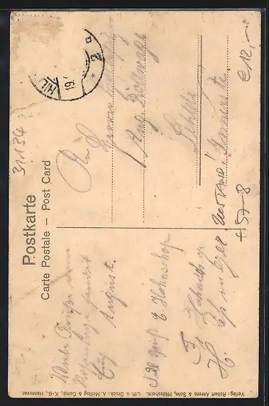 alte Ansichtskarte, gelaufen, Briefmarke entfernt, Eckknick re. unten, guter Zustand