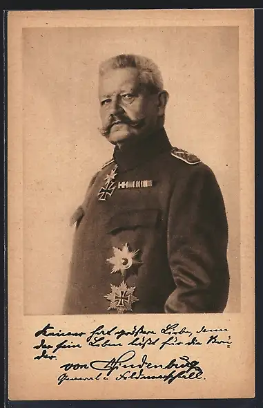 Künstler-AK Hindenburg, Portrait des Generalfeldmarschalls