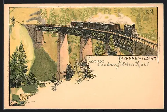 Künstler-AK Höllsteig, Ravenna-Viaduct im Höllenthal, Eisenbahn