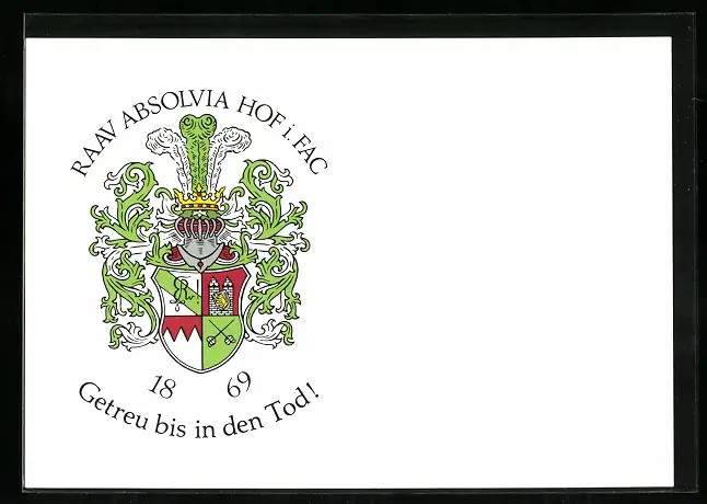Künstler-AK Hof, Raav Absolvia Hof i. Fac, Ritterhelm und Studentenwappen