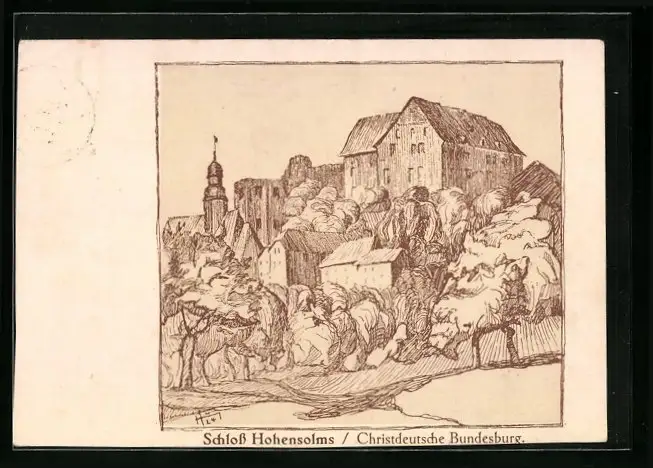 Künstler-AK Hohensolms, Blick hinauf zum Schloss