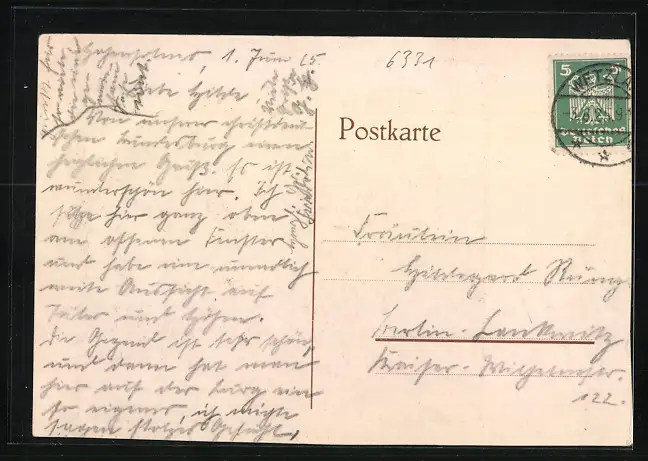 gelaufen 1925, Bugspur oben mittig, guter Zustand