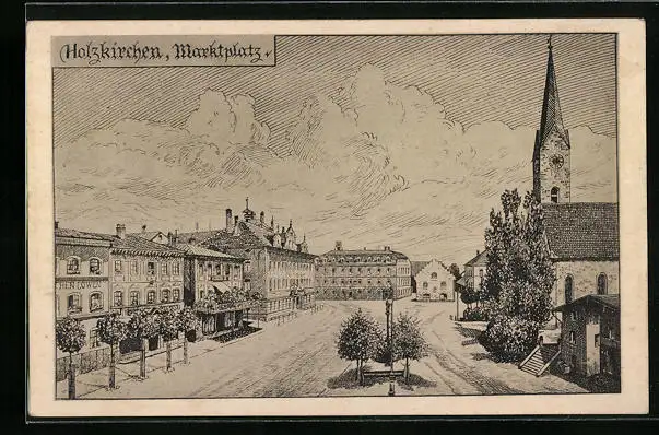 Künstler-AK Holzkirchen, Marktplatz mit Kirche