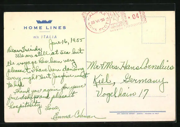 Künstler-AK Home Lines, das Passagierschiff M.S. Italia in voller Fahrt