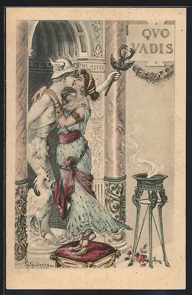 Künstler-AK Hübsche Frau küsst Hermes, Antike