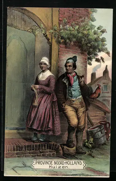 Künstler-AK Huizen, Pärchen in niederländischen Trachten