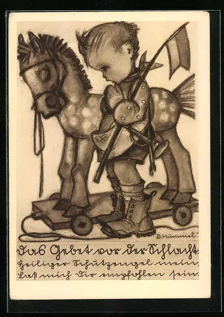 Künstler-AK Hummel: Junge mit Spielzeugpferd