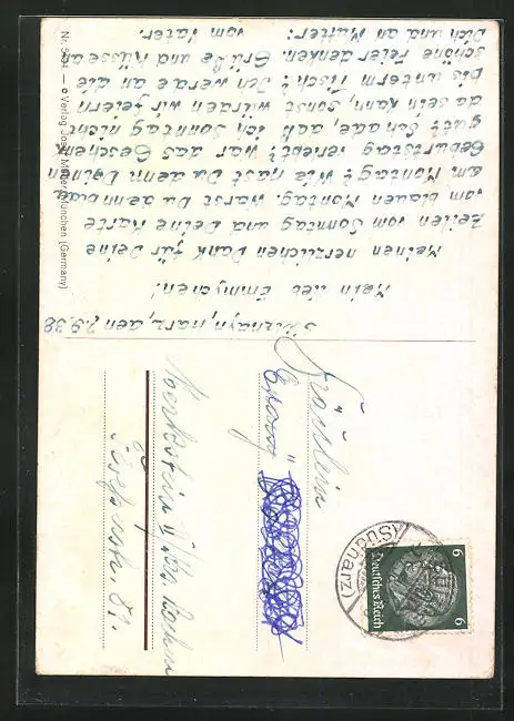 alte Ansichtskarte, gelaufen 1938, Eckknick oben re., guter Zustand