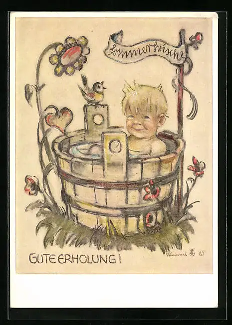 Künstler-AK Hummel: Kleiner Junge sitzt im Badezuber