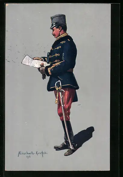 Künstler-AK Husarenstabsoffizier in Felduniform 1914-1915