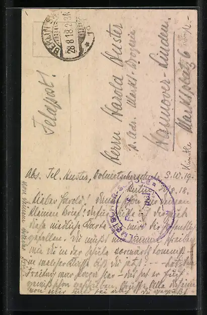 alte Ansichtskarte, gelaufen 1918, Stempelspur, guter Zustand
