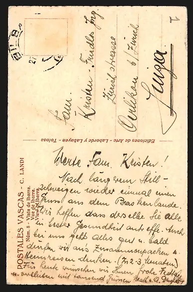 alte Ansichtskarte, gelaufen, Briefmarke entfernt, Eckknicke oben, guter Zustand