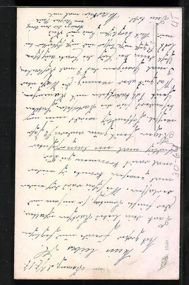 Personenbezogene Daten auf der Rückseite der Karte wurden durch blauen Textmarker unkenntlich gemacht. Die blauen Stellen sind auf die Vorderseite durchgeweicht und wirken sich negativ auf das Postkartenfoto aus
